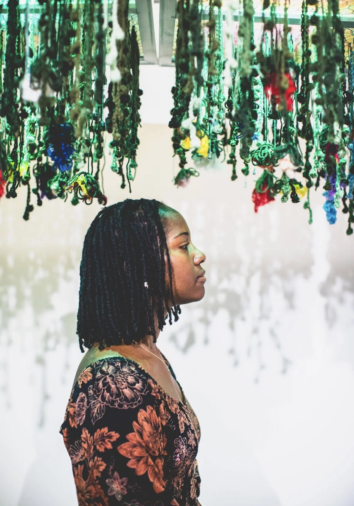 She began her fiber art journey in 2020 with macrame, and through that exploration, discovered weaving which has lead her where she is today. Once she fell in love with weaving, she started teaching herself how to spin yarn for her pieces. Since picking up fiber art, Charlese has challenged herself with each new piece to experiment with how far her materials can go, developing her color combinations and has allowed her imagination to be the guiding force behind each works she creates.